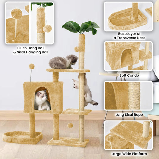 54In Cat Tree Tower for Indoor Cats Multi-Level Cat Condo Cat Bed Furniture with Scratching Post Kittens Activity Center