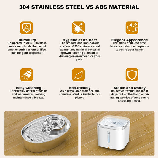 Cat Water Fountain, Stainless Steel Pet Water Fountain, Automatic Cat Water Dispenser, Dog Water Fountain, Dishwasher Safe, 67Oz/2L
