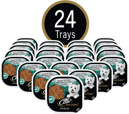 HOME DELIGHTS Adult Soft Wet Dog Food Braised Rib Flavor with Carrots & Peas in Sauce, (24) 3.5 Oz. Trays